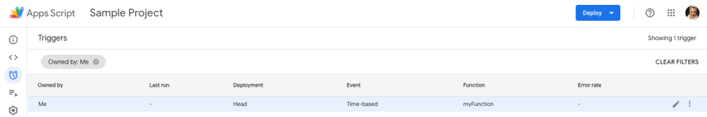 That’s it! Your code should run on your selected interval so long as the trigger exists. If at any point you would like to stop having your code run automatically, follow steps 1 and 2 to get to your Triggers List. Hover over the trigger you want to cancel, and click on the 3 dots on the right.