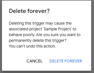 Then click “Delete Forever”. Don’t worry – it won’t delete your code and you can re-create the trigger any time by following the above steps.