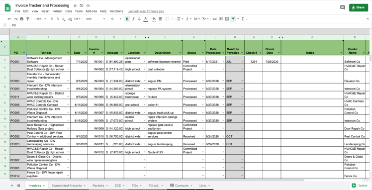At the Camden City School District, I redesigned the entire Procurement Data Processing System for the Operations department. This spreadsheet allowed the department to set up and track the annual budget, live monitor Purchase Order balances, and automated batch processing of invoices for payment. This system took what was once 3 full time jobs down to half a day’s work, allowing the department to focus on growth and development.