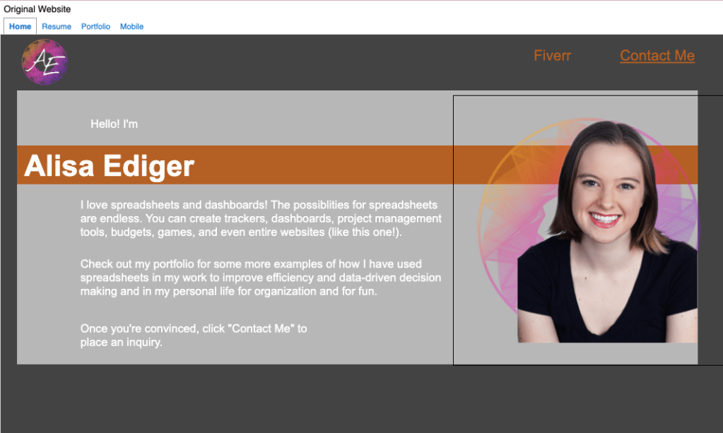 If you visited http://www.alisaediger.com a few years ago, you would have been redirected to a Google Sheet published to the web. Sometimes I miss the flexibility a sheets-site offered me, but once my freelance career really took off, I decided a professional upgrade was in order.